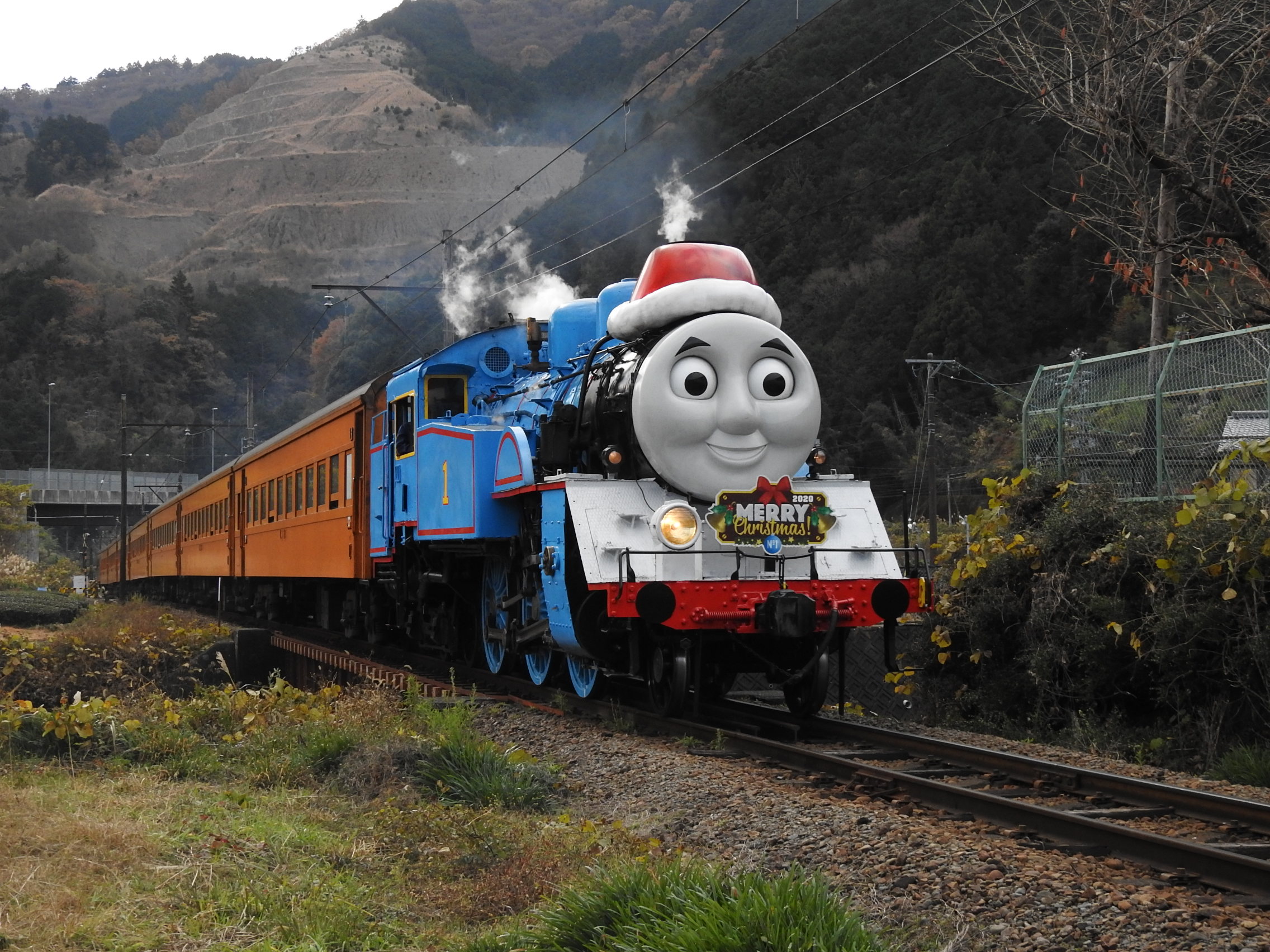新金谷駅で出発を待つトーマス